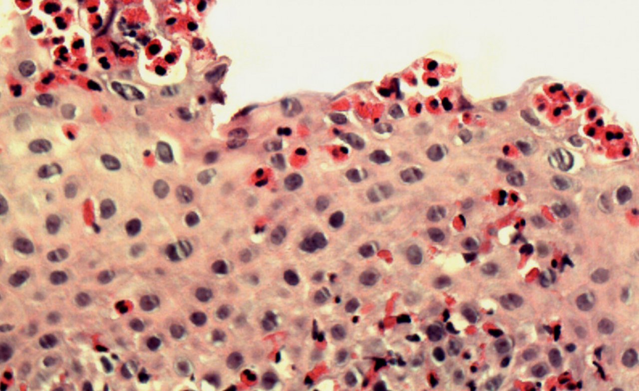 Während der Endoskopie entnimmt der Arzt mehrere kleine Gewebsproben (Biopsien) von wenigen Millimetern Grösse. Dieser Eingriff ist risikoarm. Nach Fixierung und Färbung dieser kleinen Gewebsproben werden dieselben durch den Pathologen unter dem Mikroskop untersucht. Typischerweise wird im Gewebe der Speiseröhre eine Infiltration mit eosinophilen Granulozyten gefunden. Dies sind Entzündungszellen (Leukozyten) welche vor allem bei allergischen Entzündungen gefunden werden. Zur Diagnose wird eine minimale Dichte von 15 eosinophiler Granulozyten pro Gesichtsfeld verlangt. Unter erfolgreicher Therapie sollten idealerweise praktisch keine dieser Entzündungszellen mehr im Gewebe nachweisbar sein.